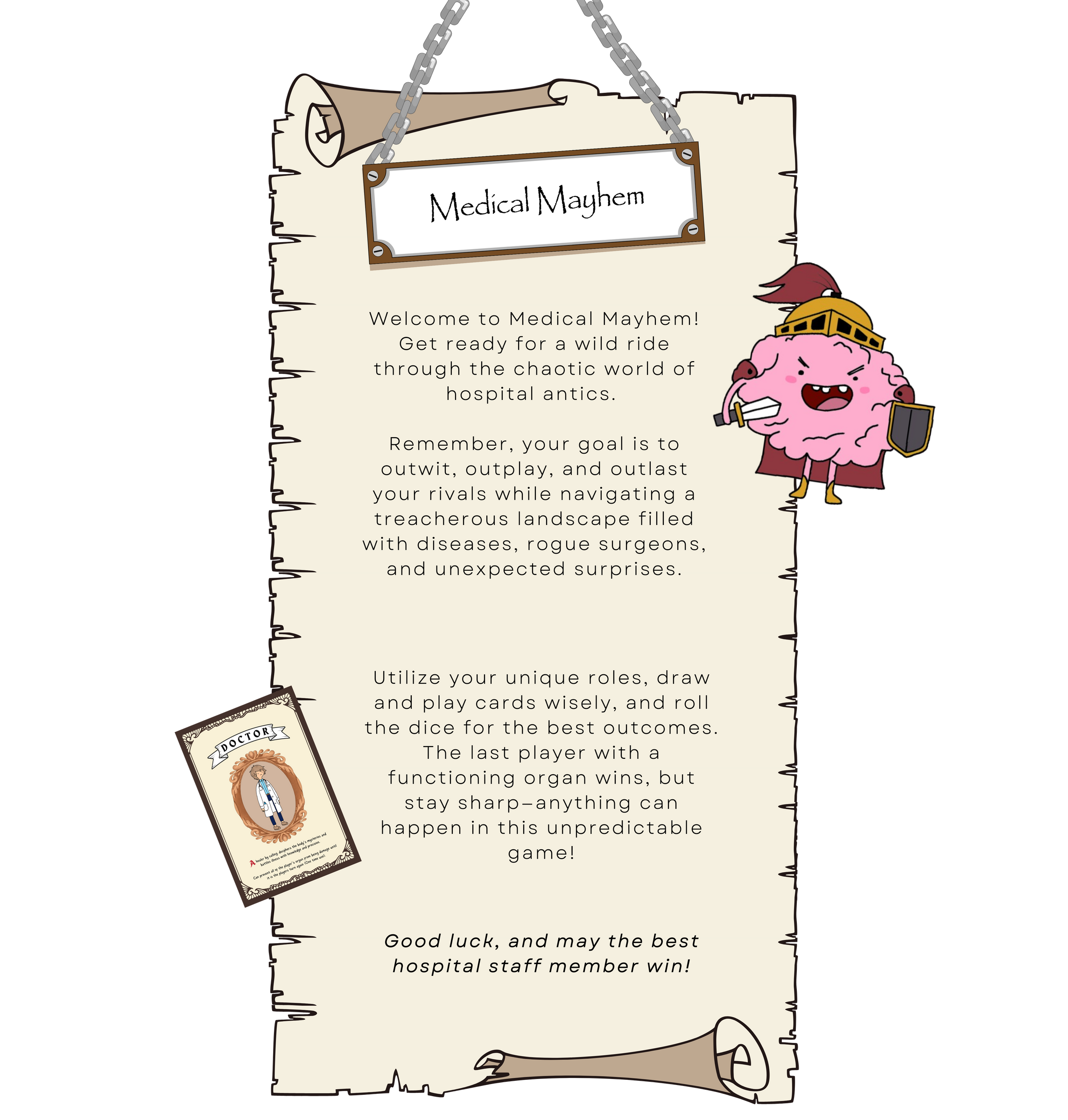 Download the Medical Mayhem Rule Book to learn more about the game, including complete setup, rules, and mechanics!